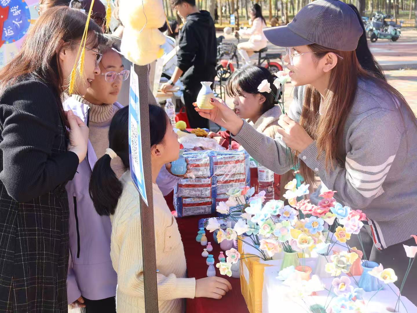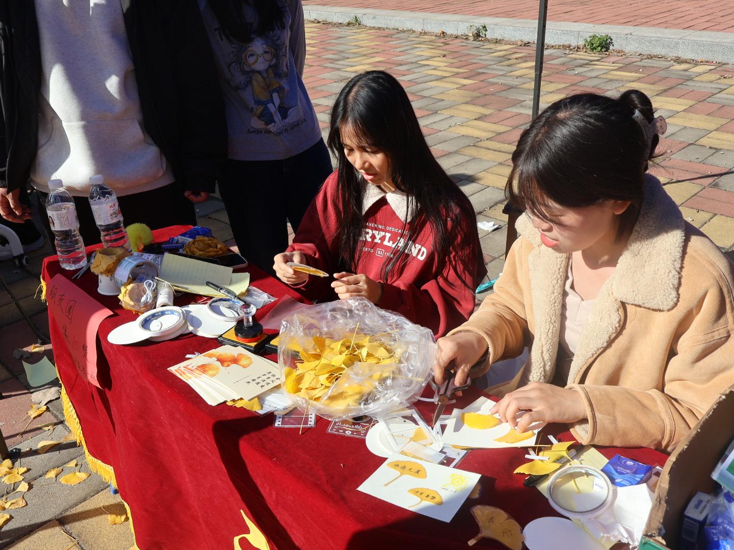 围绕银杏节主题打造的金融文创摊位中,员工们亲手制作银杏手工纪念品,陶艺插花,炫彩风车等,将银杏叶元素与金融符号融合,专业特色与节日氛围结合,既有观赏性又具纪念意义。文创作品的设计与制作过程,不仅激发了员工的创新思维,更让员工在劳动中体验生活,实现校园文化传播与劳动育人的双重效果。