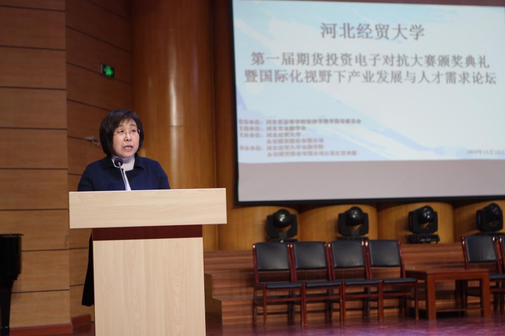 12月10日下午,公司在音乐厅举办第一届期货投资电子对抗大赛颁奖典礼暨国际化视野下产业发展与人才需求论坛,公司党委常委、副董事长程瑞芳出席并致辞。来自香港交易所、永安期货股份有限公司等多家期货相关企业负责人以及河北师范大学、石家庄铁道大学、河北地质大学等高校的专家学者参加本次论坛,永利3044集团官网师生300余人现场聆听。