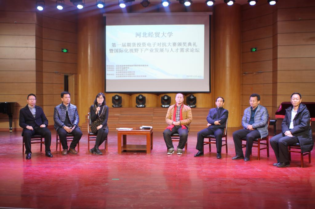 在圆桌论坛环节,香港交易所市场发展科内地客户发展部副总裁郭菲,鸡蛋期货交割库同集团公司敦朴贸易公司副总经理郝建然,玉米、白糖、小麦期货交割库冀粮集团副总裁赵长尧,世祖资产私募副总经理刘光普,永安期货股份有限公司石家庄营业部总经理王吉元,河北师范大学商公司教授于汝学、石家庄铁道大学经济管理公司副经理张艳辉、永利3044集团官网副经理杨雪美,共八位产学界专家学者分别围绕“期货+保险/订单”和“期货+保险/期权”如何服务区域产业、金融国际化视野下企业如何运用期货服务自身发展战略、如何获取正常利润和交易利润等相关的做法以及金融国际化对人才的要求等议题进行分享交流,并与同学们进行互动,现场气氛活跃,同学们纷纷举手发言,与业内专家探讨期货交易过程及人才需求等相关问题。