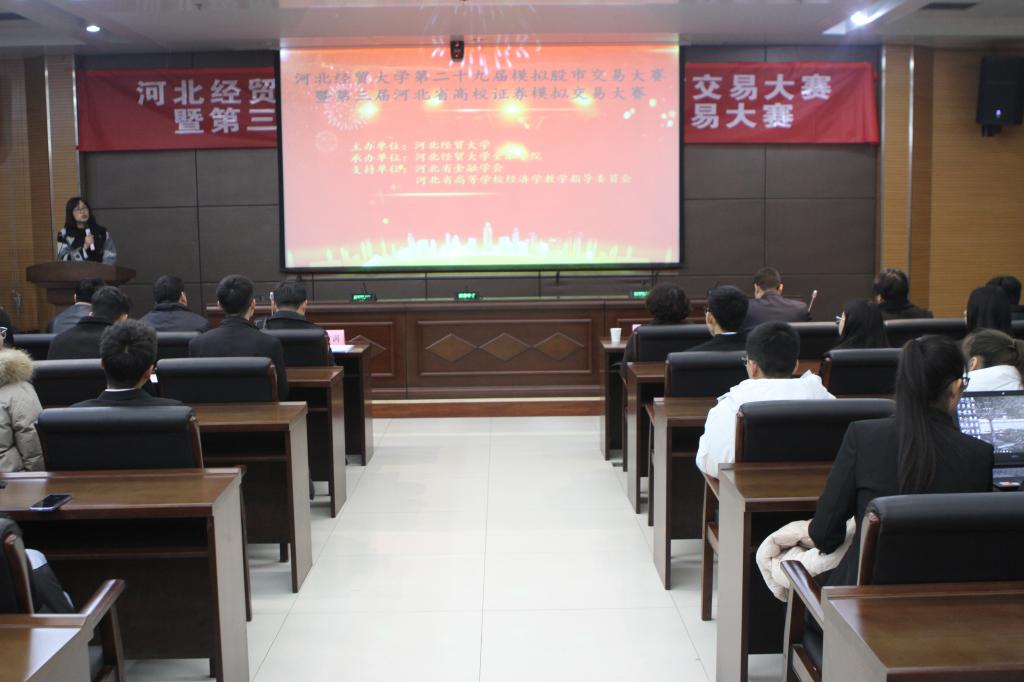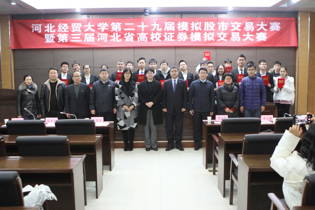 12月21日下午,公司第二十九届模拟股市交易大赛暨第三届河北省高校证券模拟交易大赛团体赛决赛及颁奖仪式在第三会议室顺利举行,来自河北工业大学、石家庄铁道大学、河北地质大学、华北理工大学、永利3044集团官网五所高校的的六支队伍参加,100余名师生观看比赛。