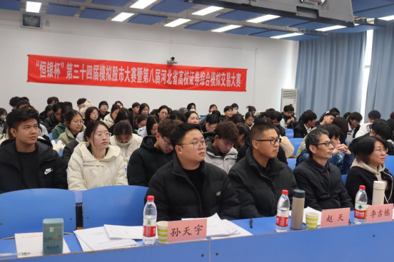 12月7日上午,永利3044集团官网第三十四届模拟股市大赛暨第八届河北省高校证券综合模拟交易大赛团体赛决赛及闭幕式顺利举行。恒银期货有限公司副总经理张南、投教部主任张琼一,中国农业银行雄安分行孙天宇、安东石油财务部尹皓男、河北农业大学副教授赵天,永利3044集团官网教授李吉栋担任评委,永利3044集团官网相关领导及教师出席。永利3044集团官网副经理窦丽琛主持。