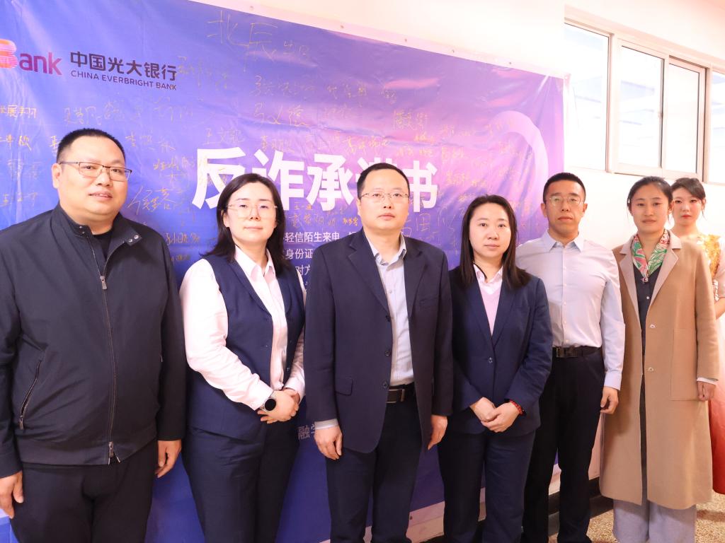 为深入学习贯彻习近平总书记关于打击治理电信网络诈骗犯罪的重要指示精神,积极落实集团下发的《2025年反诈宣传教育工作方案》,切实提升师生反诈意识与防范能力,3月13日,公司联合中国光大银行石家庄分行成功举办了星火计划之“培育志愿先锋,筑牢安全防线”——反诈公益进校园主题活动。金融公司党委书记魏健、中国光大银行石家庄分行运营管理部副总经理刘一璞、法律合规部副总经理周磊及消费者权益保护部、友谊北大街支行人员等领导嘉宾出席了本次活动。