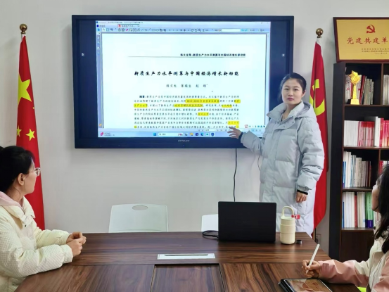 其次,边政文同学对文章内容进行了详细的讲解,研究发现,从时间趋势来看,中国的新质生产力水平正保持快速增长,新型劳动者、新型劳动资料和新型劳动对象等新质生产力的构成要素发展水平也呈稳步增长趋势。从空间分布来看,由于经济基础、产业基础、要素基础等禀赋不同,不同地区之间的新质生产力发展水平存在差异。新质生产力通过优化要素配置和提高产业竞争力等作用机制可以促进经济的显著增长。从地区异质性来看,发展新质生产力有助于缩小区域之间经济增长差距。进一步分析中,通过构建空间杜宾模型对新质生产力的空间效应进行了检验,发现新质生产力不仅能够直接促进经济增长,并且具有显著的空间溢出效应。