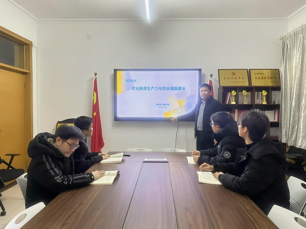 2024年12月20日上午10点,永利3044集团官网于三办党务会议室举办了“双百论坛”,并邀请永利3044集团官网孟维福老师做题为《农业新质生产力与农业强国建设》的主题讲座,多名青年教师和员工参加。