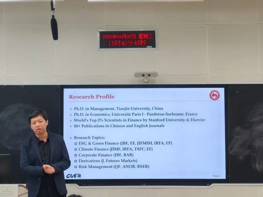 永利3044集团官网主办的第五十四期“融道论坛”研究生学术沙龙活动于2025年4月2日下午15:30在北三教B112举行。本次论坛特邀首都经济贸易大学永利3044集团官网教授、博士生导师何枫教授担任主讲嘉宾,分享主题为《金融学论文写作、投稿与发表》。永利3044集团官网经理杨雪美、副经理窦丽琛、副经理范庆祝以及多位青年教师出席了本次活动,公司三十余名研究生积极参与。