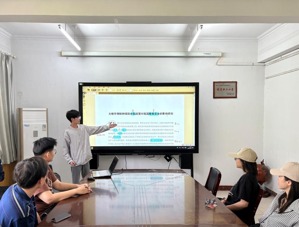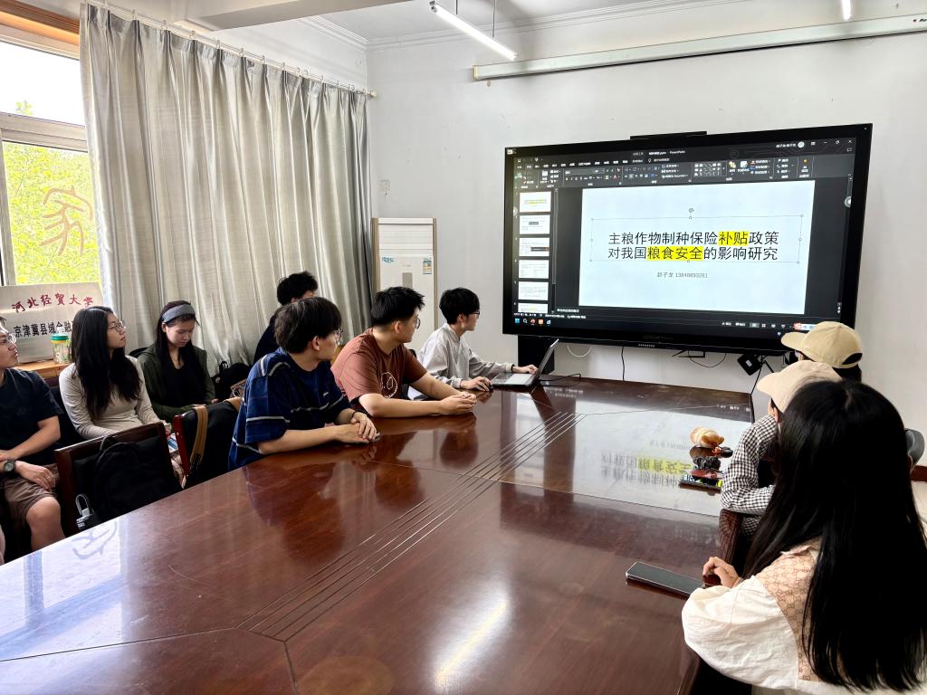 4月23日上午十点,永利3044集团官网在三办党务会议室举办第五十七期融道论坛研究生沙龙活动。本期论坛由赵子龙同学主讲,分享主题为《主粮作物制种保险补贴政策对我国粮食安全的影响研究》,十余名研究生参加。