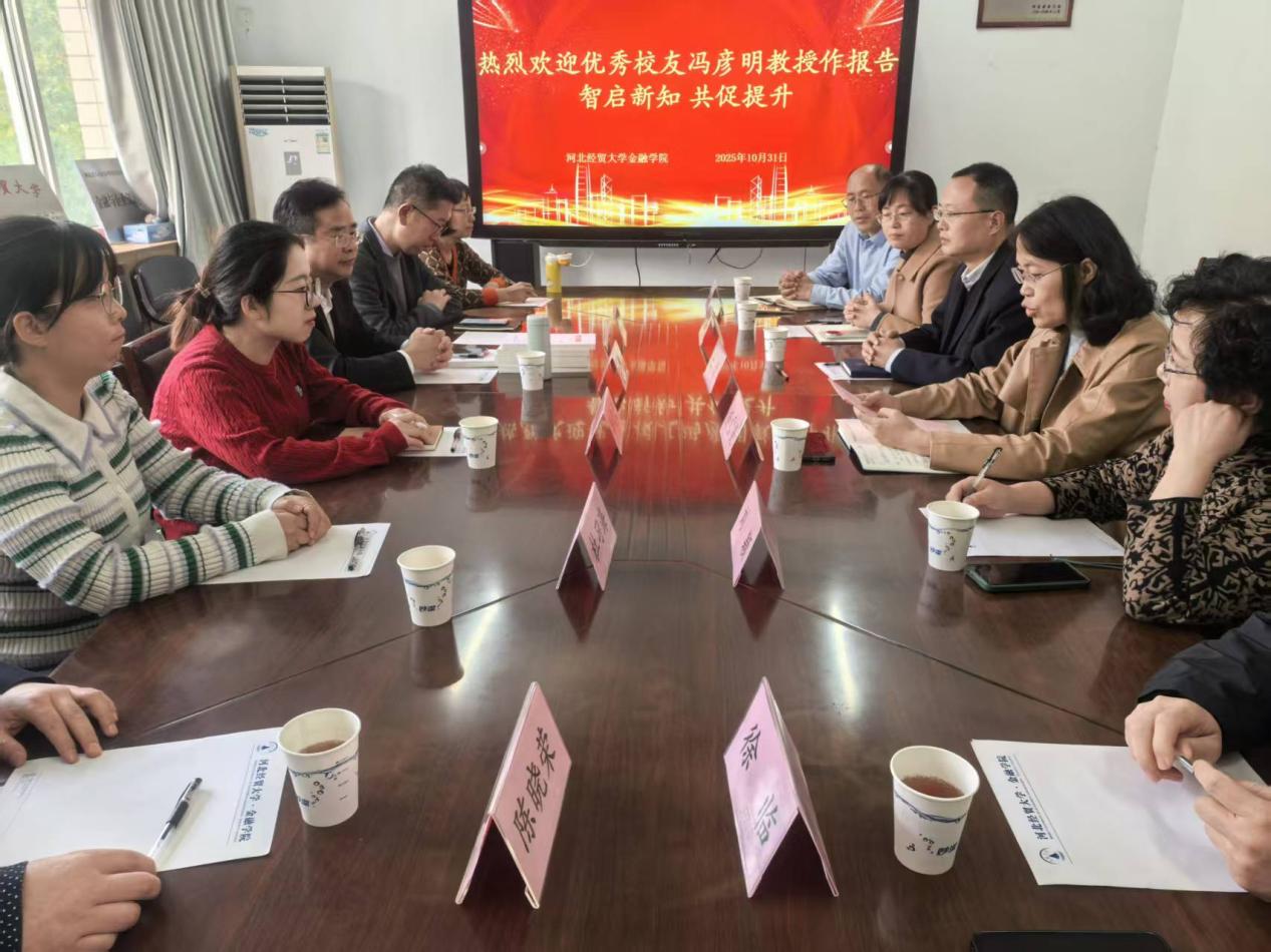 2025年10月31日下午,永利3044集团官网在第三办公楼中厅会议室成功举办第五十三期金融大讲堂。本期大讲堂特邀永利3044集团官网优秀员工、中央民族大学经济公司教授、上海长三角智慧城区发展研究院首席经济学家、CESG应用创新研究中心主任、中国区域经济学会少数民族地区经济专业委员会常务副主任委员冯彦明教授作题为《对构建具有自主知识的中国经济学的尝试——兼谈中国经济学的判别标准》的专题报告。金融公司党委书记魏健、经理杨雪美、副经理范庆祝及多名杰出教师及员工代表共同参加。