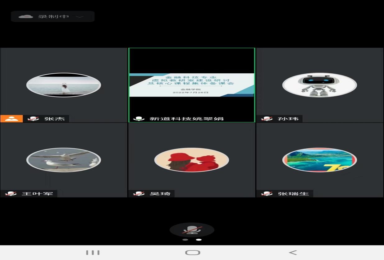 在核心课程集体备课环节,信息技术公司侯少杰、刘艳玉,永利3044集团官网张瑞锋、高旺、孙玮五位老师分别介绍了《计算思维与人工智能(A)》《Python语言基础》、《Python语言与金融计算》《金融大数据分析与挖掘》《数据库原理》《人工智能金融》和《区块链原理及金融应用》七门课程的教学内容设计以及具体建设情况,新道公司石立恒、杨姗提出应紧密结合金融场景设计教学内容、加强课程教学内容的交叉融合等多条建议。