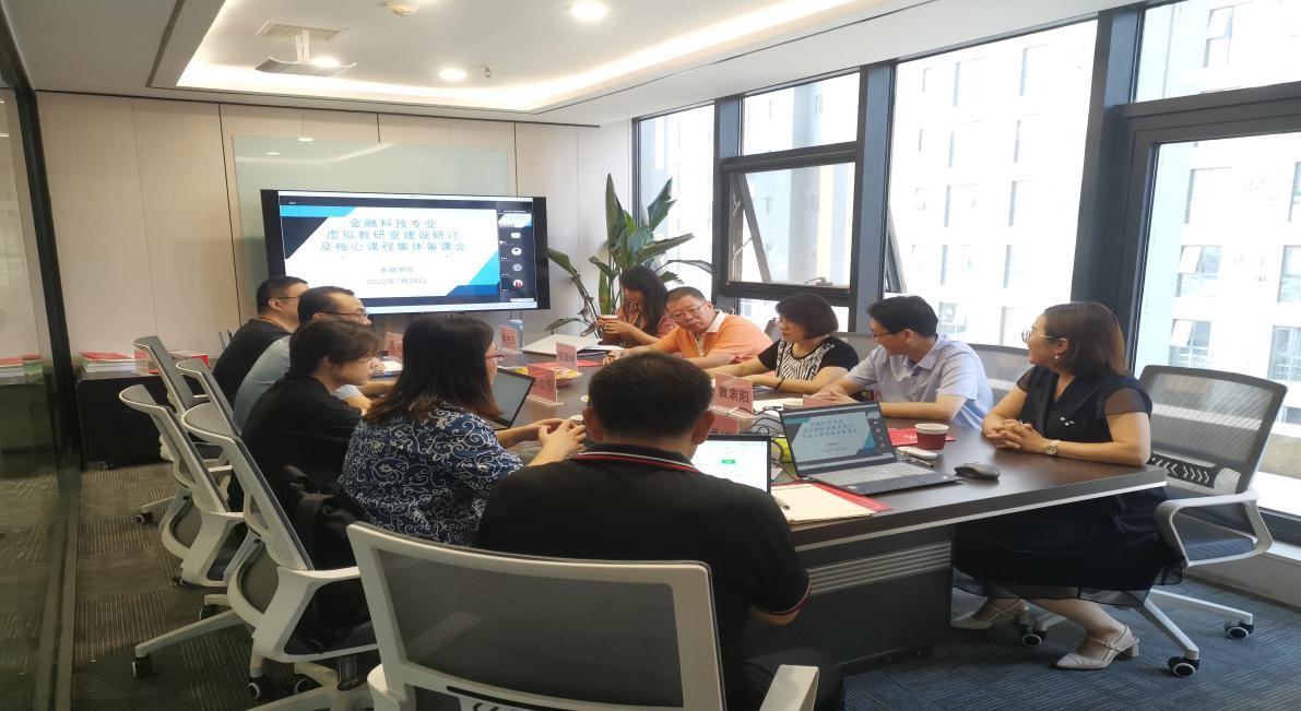 7月26日,永利3044集团官网通过线上线下相结合的方式召开了金融科技虚拟教研室建设研讨及核心课程集体备课会。永利3044集团官网副经理窦丽琛、新道科技股份有限公司河北省区校企合作总监姚翠娟出席,新道总部高级顾问石立恒、杨姗以及金融科技虚拟教研室全体成员参加,会议由永利3044集团官网金融科技系主任曹衷阳主持。