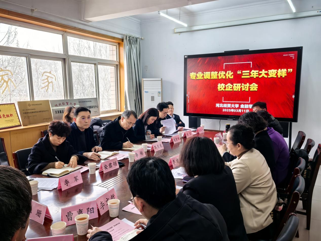 2025年3月11日,永利3044集团官网组织召开专业调整优化“三年大变样”校企研讨会。会议邀请中国人民银行河北省分行、第一创业证券河北分公司、中国金融传媒股份有限公司、河北银行及恒银期货有限公司等单位的行业专家参与研讨。永利3044集团官网经理杨雪美、投资学专业负责人李建英、保险学专业负责人冯文丽及各专业系主任参会,副经理窦丽琛主持。