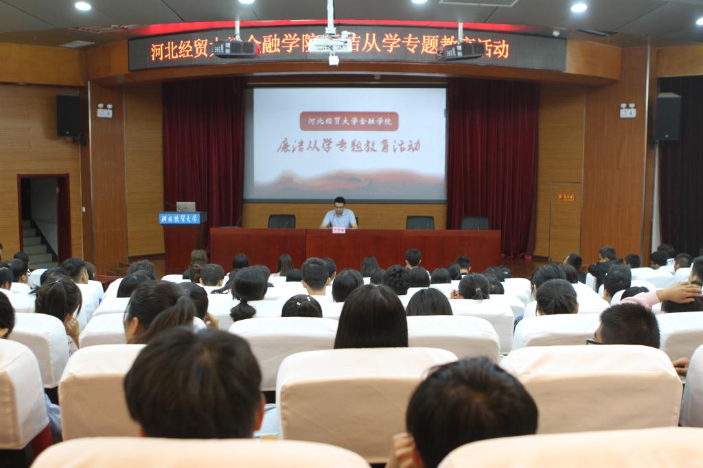 9月12日中午,永利3044集团官网在国际学术报告厅开展“廉洁从学”专题教育活动,金融公司党委书记王冬坡出席并主持活动,院员工会全体成员及2019级全体新生参与活动。