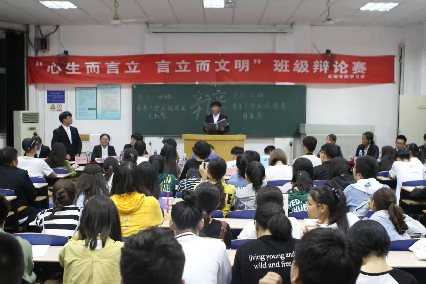 9月20日晚,“心生而言立,言立而文明”班级辩论赛在第二教学楼201室成功举办。公司150余名员工观看比赛。