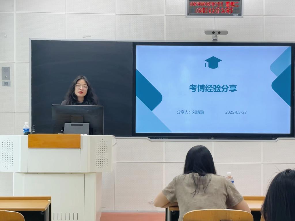 22级金融学研究生刘婧涵作为优秀毕业生代表,首先分享了她的考博经验。她强调,考博是一项需要长期规划和细致准备的任务,建议同学们要提前阅读目标公司的招生文件,深入了解报考要求和研究方向,同时尽早准备相关专业知识。她还提到,可以同时申请多所院校,以增加录取机会,但需根据自身情况合理分配精力,并分享了她在备考过程中如何平衡科研与复习的时间管理技巧。